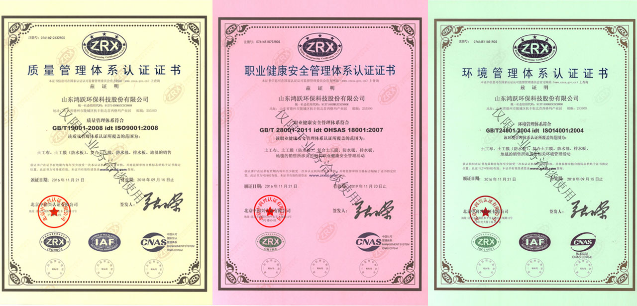 已取得工業產品生產許可證、ISO質量管理體系認證、環境體系認證、職業健康體系認證